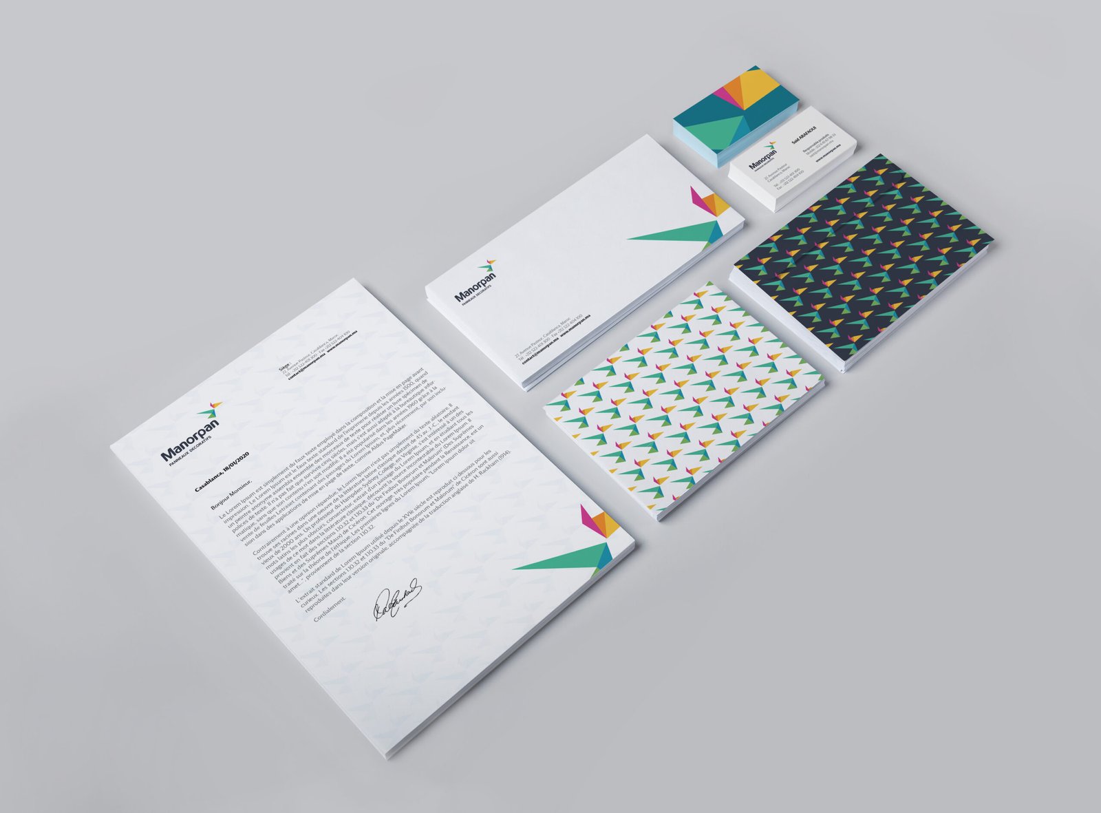 A grid was created from a 3D isometric view of a cube which was then turned on its side. This triangular grid served as the guides to the building of the signage shapes.